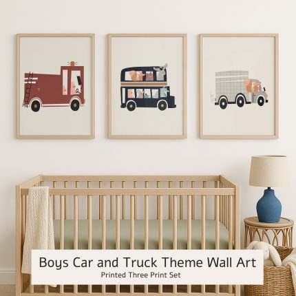 Bring charm and adventure to your little one’s room with this playful Animal Vehicles Wall Art Set. Featuring three adorable prints of animals driving a fire truck, double-decker bus, and delivery truck, this delightful trio is perfect for a transport-themed nursery or toddler’s bedroom.