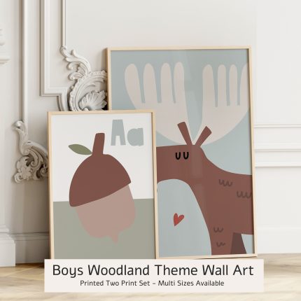 Transform your child’s room into a warm and whimsical woodland retreat with this Boys Woodland Theme Wall Art Set. This curated collection of five prints features a mix of cheerful sunshine, forest animals, and nature-inspired alphabet art — perfect for creating a playful and calming atmosphere in any boys nursery or toddler space.